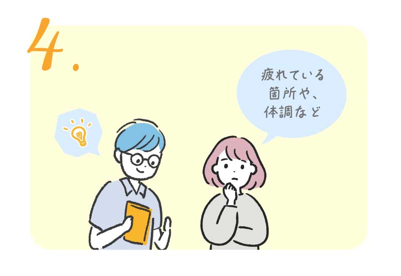 施術中もお気軽に揉みの強さやお疲れの箇所等、ご希望をお申し出ください。