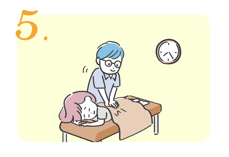 担当セラピストより、次回のご予約など確認させていただきます。 又のご来店心よりお待ちしております。